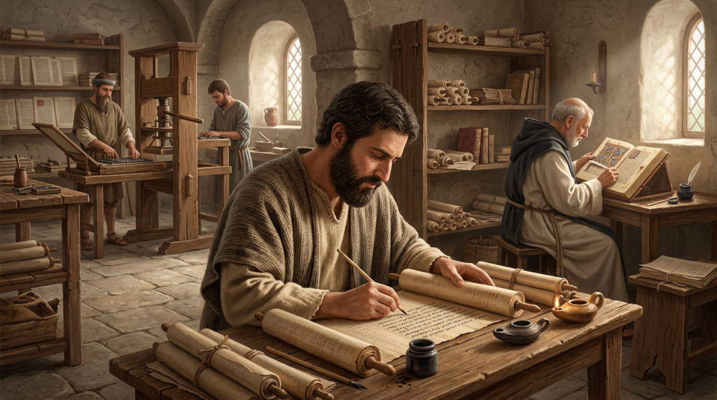 La composition de la Bible n’a pas été un processus instantané, mais un développement progressif impliquant des traditions orales, des rédactions multiples et des compilations successives. Les premiers livres de la Bible ont vu le jour dans un contexte de tradition orale avant d’être mis par écrit et compilés en un canon sacré. Ce processus complexe reflète l’engagement et la dévotion de nombreux scribes, prophètes, théologiens et traducteurs qui ont consacré leur vie à préserver et à transmettre ces textes.