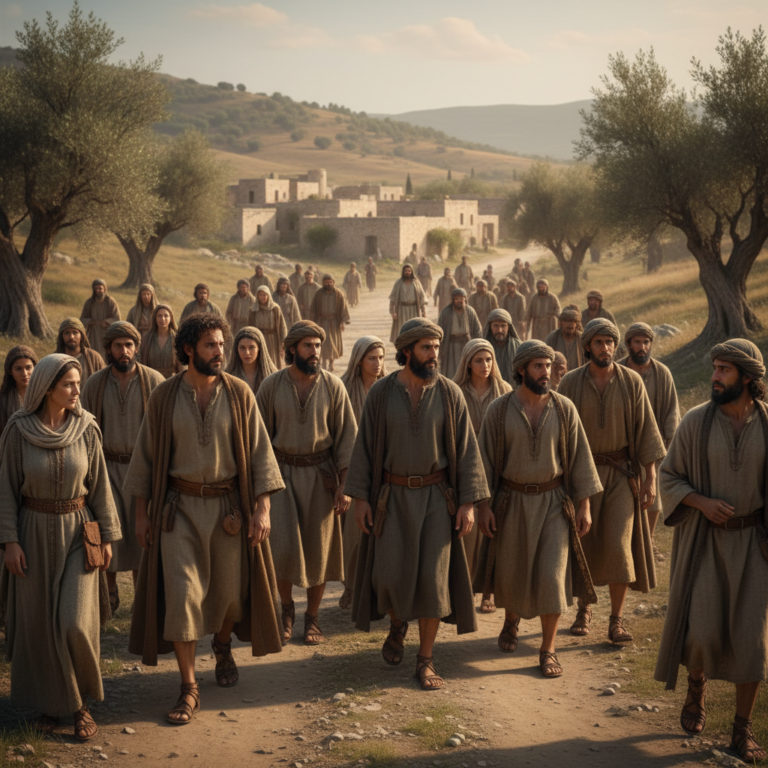 Le Messie Jésus et ses disciples se rendent à Béthanie, située près de Jérusalem...