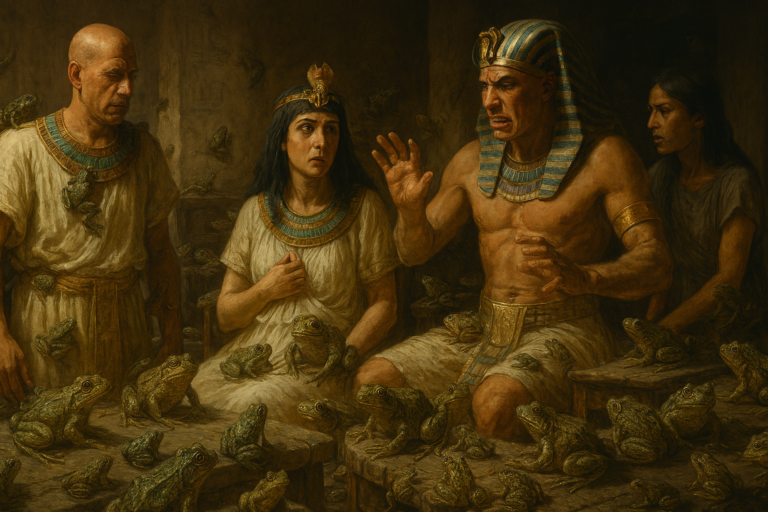 Dieu annonce alors une seconde plaie, plus intime et envahissante : les grenouilles, symboles de vie et liées à la déesse Héqet...