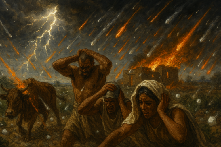 La septième plaie marque un tournant : Dieu envoie une tempête de grêle mêlée de feu, d’une violence inédite, qui frappe hommes, bêtes et récoltes...