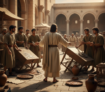 Le Messie JĂ©sus, en sortant d’une synagogue Ă  JĂ©rusalem, enseigne la foule.
