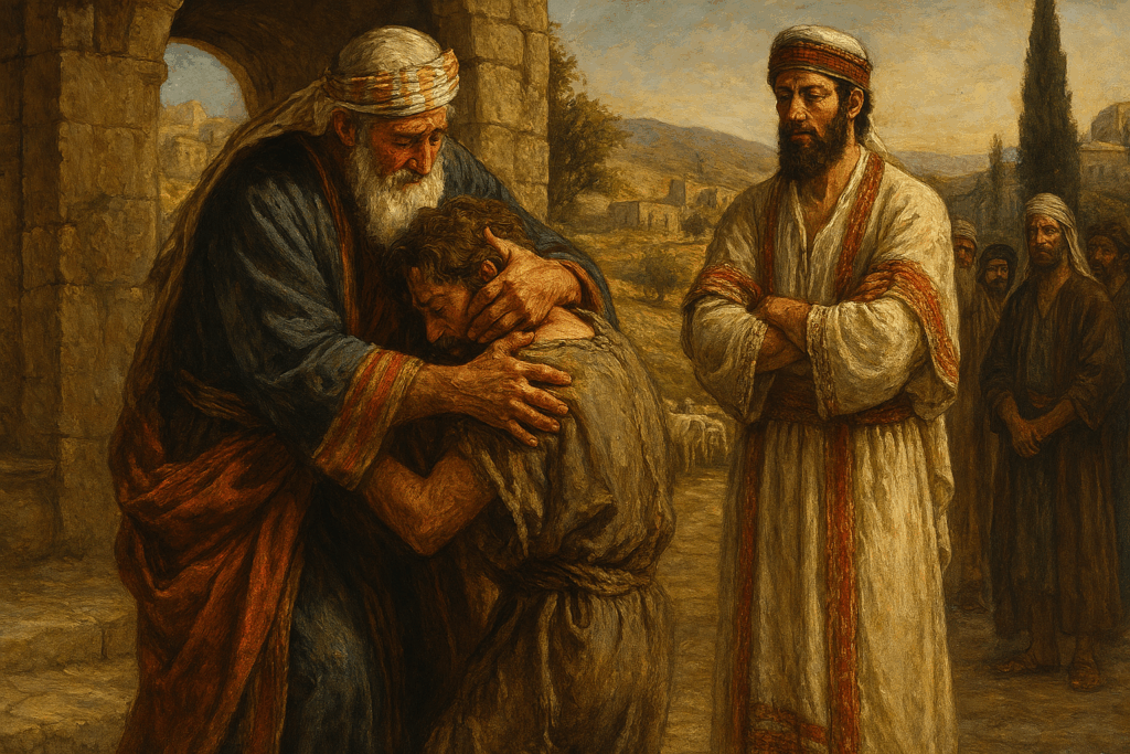 Le message associĂ© au fils cadet est aisĂ©ment comprĂ©hensible. AprĂšs sâĂȘtre Ă©garĂ©, il se repent, revient vers son pĂšre et reçoit de lui le pardon, retrouvant ainsi sa place initiale. Cette dynamique rappelle la bontĂ© de Dieu, toujours en quĂȘte de ceux qui sont perdus.