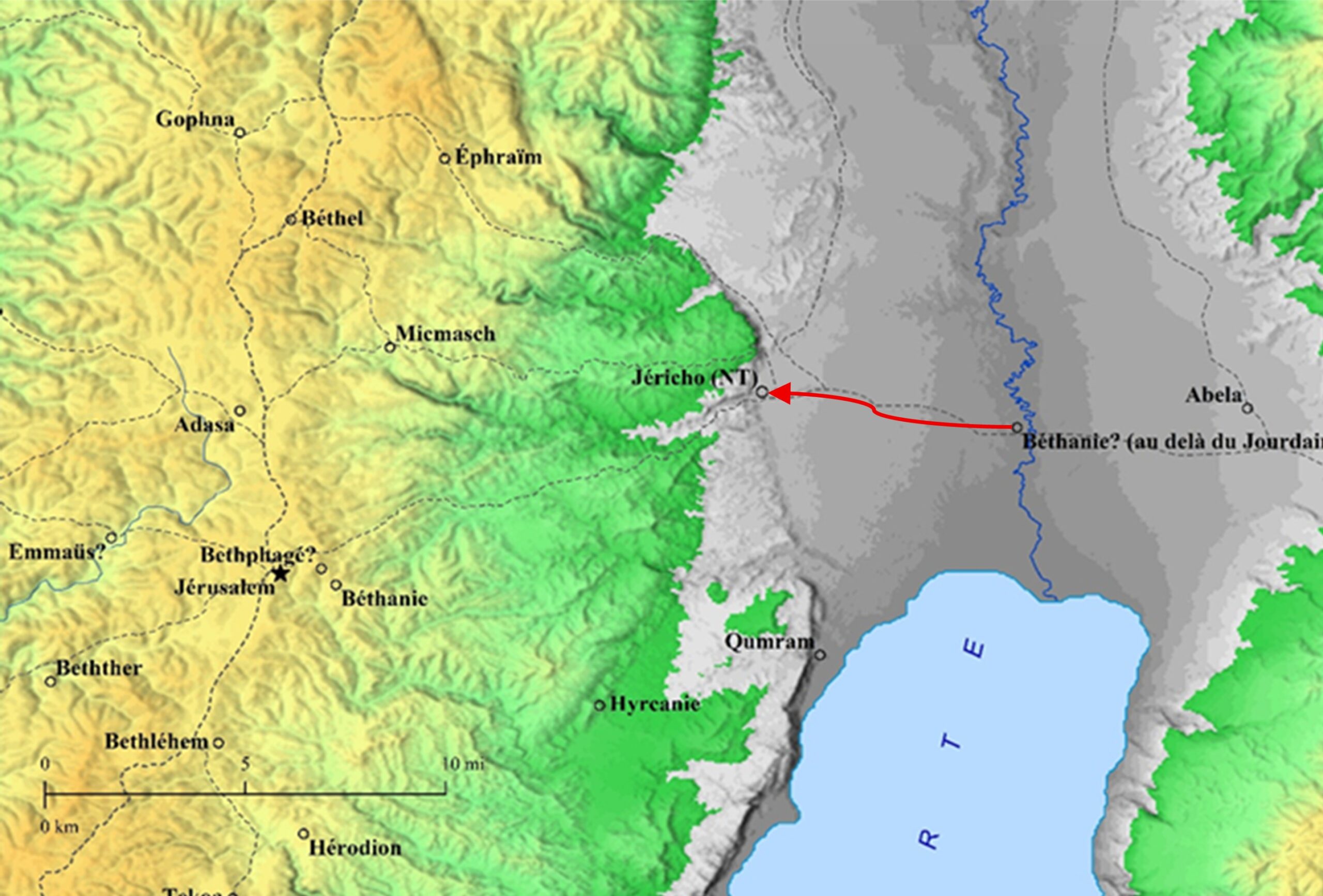 Le Messie Jésus marche résolument en direction de Jérusalem. Il avance en tête, comme quelqu’un qui connaît parfaitement la route et ce qui l’attend au bout. Derrière lui, les disciples suivent avec un mélange de respect, d’inquiétude et d’incompréhension. Certains sont frappés par la détermination de leur maître ; d’autres sentent confusément que ce voyage porte en lui quelque chose de grave. Même ceux qui accompagnent le groupe, un peu plus loin, perçoivent une tension inhabituelle et en sont effrayés.